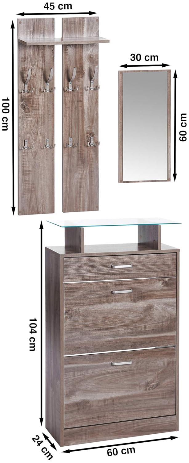 Ts Ideen 3er Set Garderobe Spiegel Schuhkipper In Holzoptik Eiche