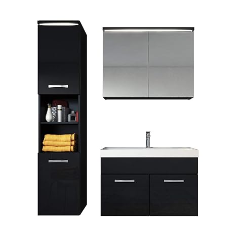 Badezimmer Badmobel Set Paso Led 80 Cm Waschbecken Hochglanz